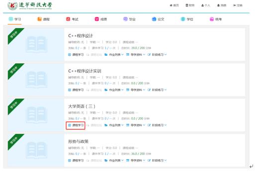1、登錄后,進(jìn)入主頁面,找到學(xué)習(xí),然后選擇課程學(xué)習(xí)。