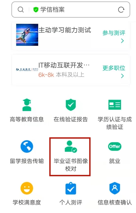 3、進(jìn)入學(xué)信網(wǎng),選擇畢業(yè)證書圖像校對(duì)。